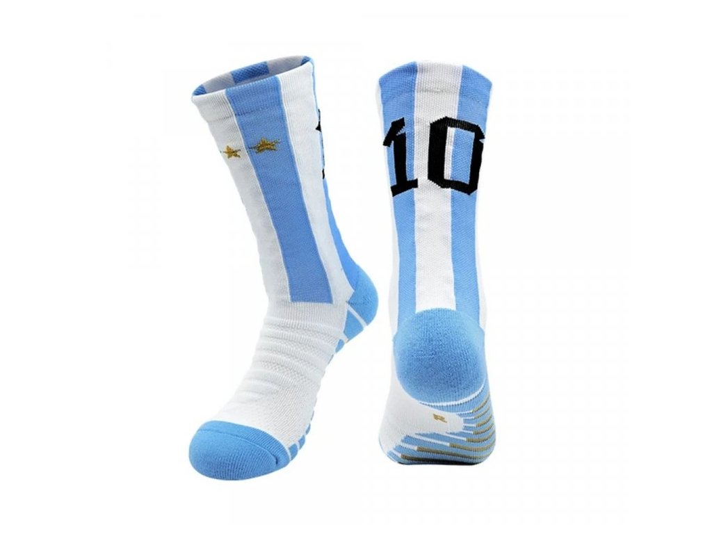 Zažijte měkkost a pohodlí fanoušků Argentiny v těchto praktických ponožkách. Výrazný znak zaručuje autenticitu a ukazuje hrdost a podporu oblíbenému fotbalovému týmu a hráčů. Ponožky jsou skvělým doplňkem ke sportovnímu oblečení fanoušků Messiho.